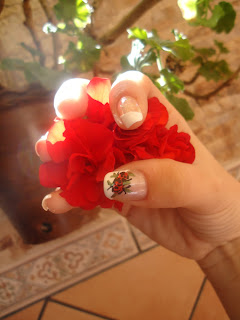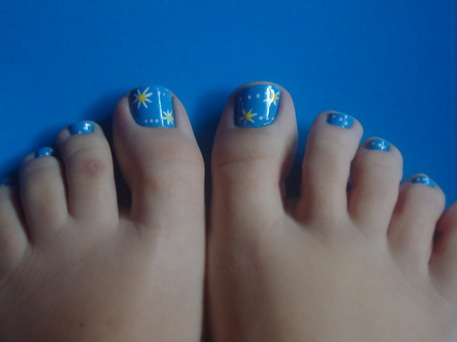 Luego nos pintamos la uña con 2 capas del esmalte azul para que el color sea más intenso, esperamos unos minutos y cogemos el esmalte blanco y con el pincel de nail art o uno que tengais por ahí pintamos en el extremo superior de la uña, algunas líneas simulando una estrella, y luego hacemos lo mismo con el extremo inferior. luego cogemos un palillo de diente y con la punta mojando sobre el esmalte blanco vamos haciendo puntitos justo al lado del diseño en forma de estrella que acabamos de hacer.